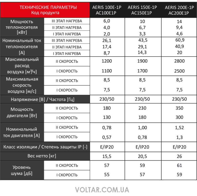 Характеристики Электрическая тепловая завеса Reventon AERIS 150E-1P 230В