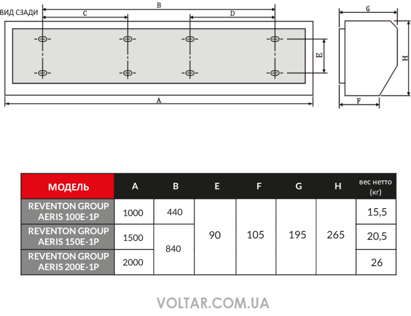 Описание Электрическая тепловая завеса Reventon AERIS 150E-1P 230В