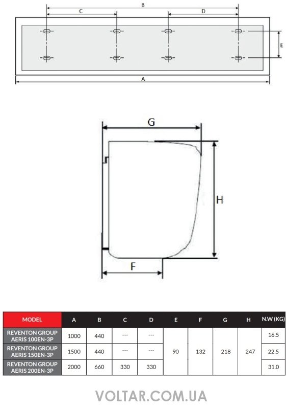 Характеристики Электрическая тепловая завеса Reventon AERIS 100EN-3P 400В