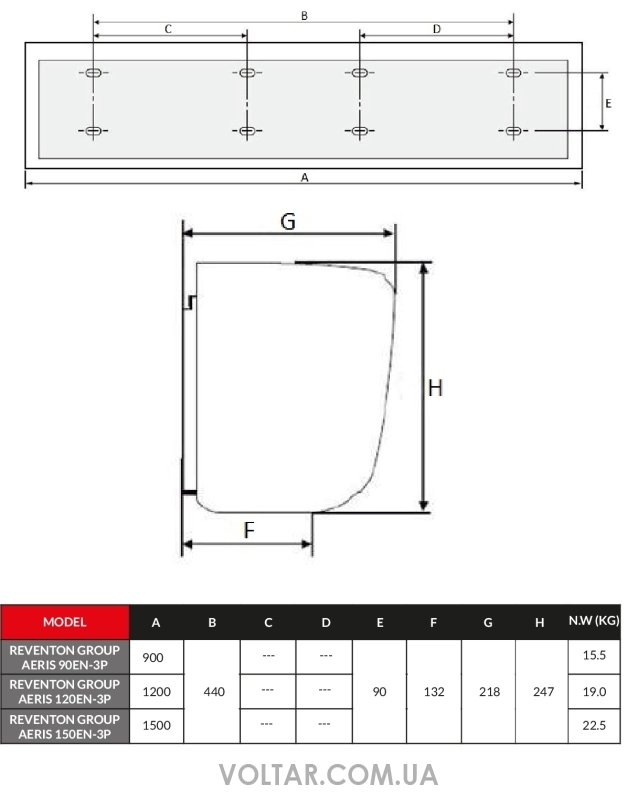 Характеристики Электрическая тепловая завеса Reventon AERIS 120EN-3P 400В
