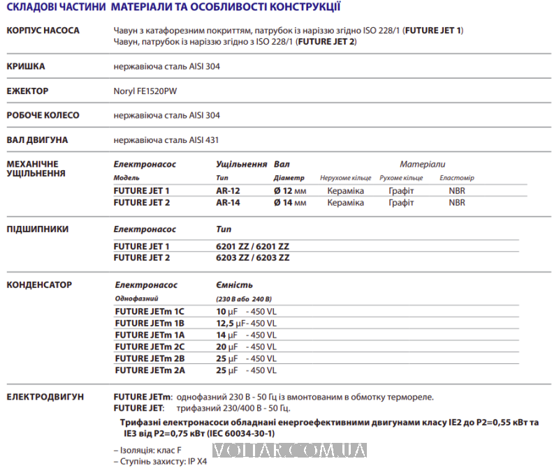 Характеристики Насос Pedrollo FUTURE JETm 2A (старая модель JSWm 15M, 2A) Самовсасывающий