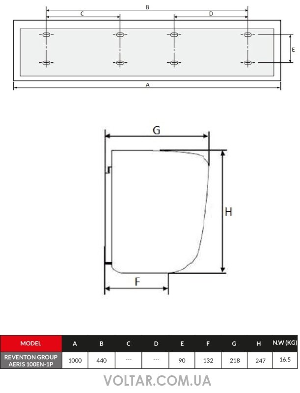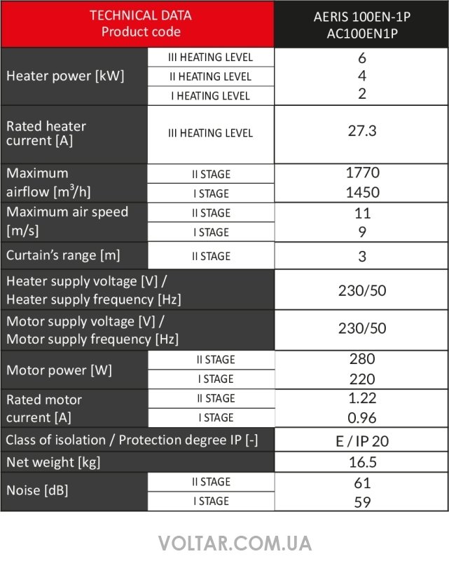 Характеристики Электрическая тепловая завеса Reventon AERIS 100EN-1P 230В