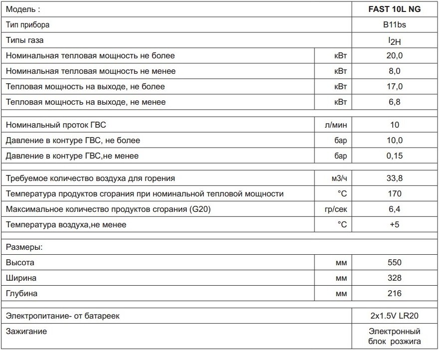 Характеристики Колонка газовая Ariston Fast 10L NG