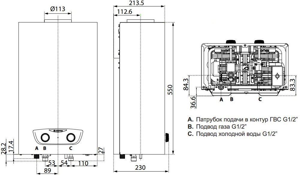 ПобедитеЛь89Имеется ограничитель температуры и функция охлаждения теплообменника при выключении колонки. С безопасностью все в порядке, есть контроль пламени, который обеспечивает мгновенное отключение газа при исчезновении пламени.