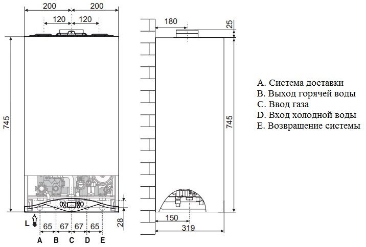 Ø відведення продуктів згоряння і подачі повітря ( | 60/100, 80/80 |