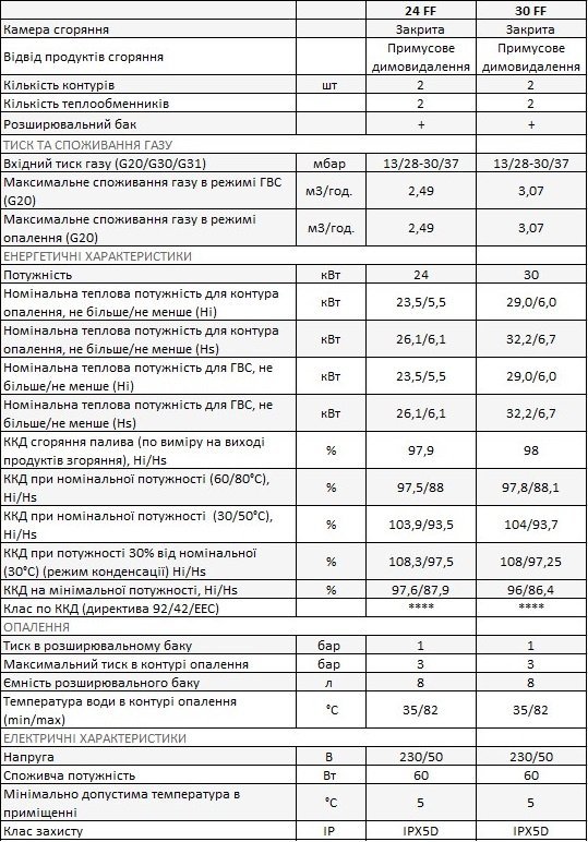 - Котел адаптований для України - працює при зниженому вхідному тиску газу (до 5 мбар), води, стійкий до перепадів напруги і низьких вуличних температур (до -52˚С)