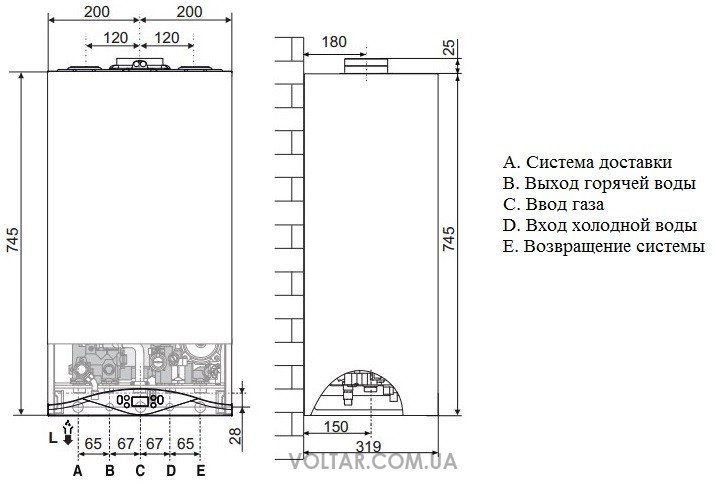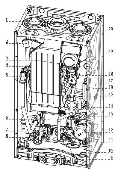 * Труба для відведення продуктів згоряння / припливу повітря не передбачена виробником в комплектації котла і купується окремо.